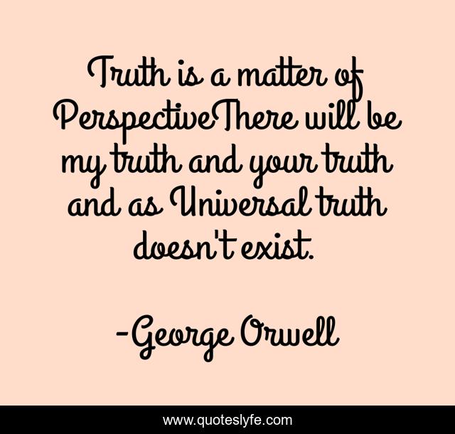 This page presents the quote "Truth is a matter of PerspectiveThere will be my truth and your truth and as Universal truth doesn't exist.". Author of this quote is George Orwell. .