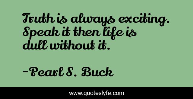 "Pearl S. Buck Quotes." Quoteslyfe.com, 2025. Fri. 05 Dec. 2025. <https://www.quoteslyfe.com/quote/Truth-is-always-exciting-Speak-it-then-262273>.