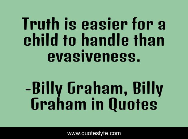 This page presents the quote "Truth is easier for a child to handle than evasiveness.". Author of this quote is Billy Graham, Billy Graham in Quotes. This quote is about children, billy-graham,.