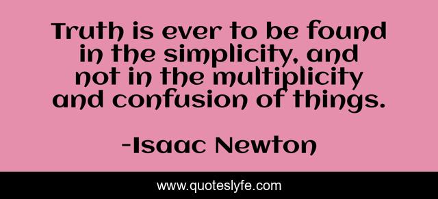 This page presents the quote "Truth is ever to be found in the simplicity, and not in the multiplicity and confusion of things.". Author of this quote is Isaac Newton. This quote is about simplicity, truth,.