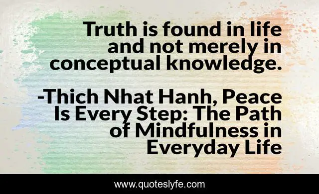 This page presents the quote "Truth is found in life and not merely in conceptual knowledge.". Author of this quote is Thich Nhat Hanh, Peace Is Every Step: The Path of Mindfulness in Everyday Life. .