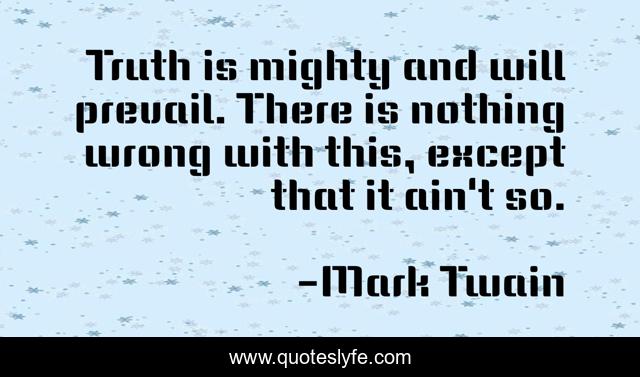 This page presents the quote "Truth is mighty and will prevail. There is nothing wrong with this, except that it ain't so.". Author of this quote is Mark Twain. This quote is about nothing, truth is,.