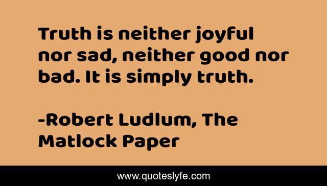 This page presents the quote "Truth is neither joyful nor sad, neither good nor bad. It is simply truth.". Author of this quote is Robert Ludlum, The Matlock Paper. This quote is about joy, bad, good, truth, sad,.