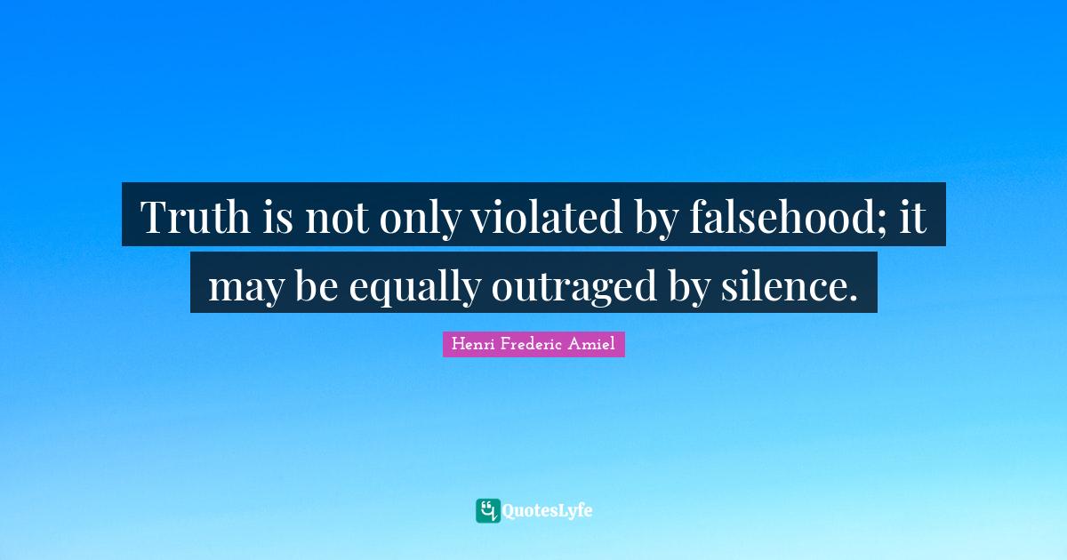 This page presents the quote "Truth is not only violated by falsehood; it may be equally outraged by silence.". Author of this quote is Henri Frederic Amiel. This quote is about falsehood, empathy, outraged, may, anger, silence, truth, truth is,.