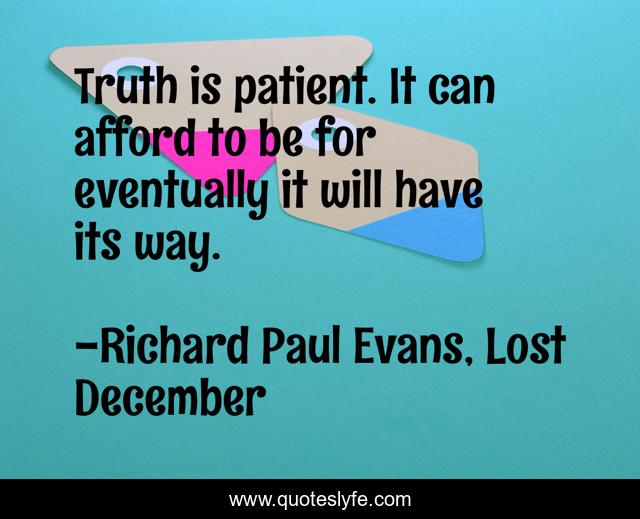 "Richard Paul Evans, Lost December Quotes." Quoteslyfe.com, 2025. Fri. 05 Dec. 2025. <https://www.quoteslyfe.com/quote/Truth-is-patient-It-can-afford-to-167788>.