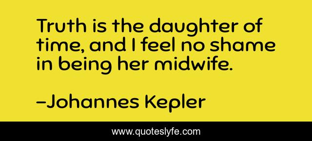 This page presents the quote "Truth is the daughter of time, and I feel no shame in being her midwife.". Author of this quote is Johannes Kepler. This quote is about daughter, truth is, time,.