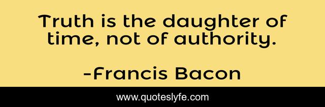 This page presents the quote "Truth is the daughter of time, not of authority.". Author of this quote is Francis Bacon. This quote is about daughter, truth is, truth,.