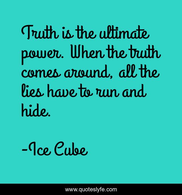 This page presents the quote "Truth is the ultimate power. When the truth comes around, all the lies have to run and hide.". Author of this quote is Ice Cube. This quote is about ice-cube, music, truth, society,.
