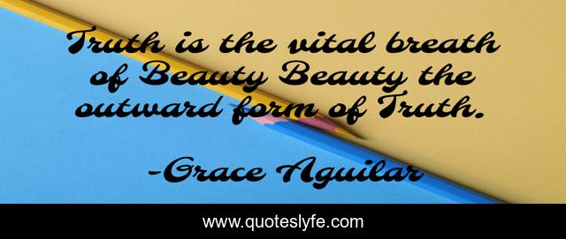 This page presents the quote "Truth is the vital breath of Beauty Beauty the outward form of Truth.". Author of this quote is Grace Aguilar. .