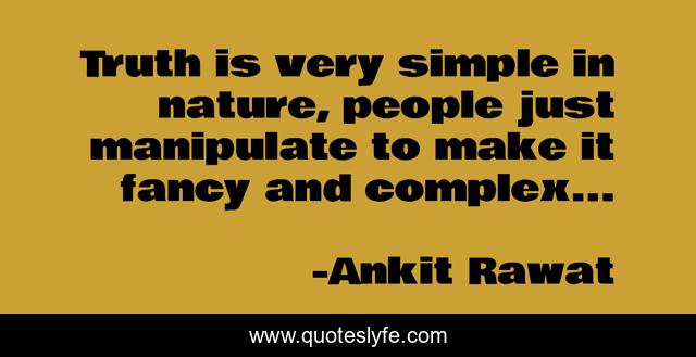 This page presents the quote "Truth is very simple in nature, people just manipulate to make it fancy and complex...". Author of this quote is Ankit Rawat. This quote is about life-philosophy, life, truth,.