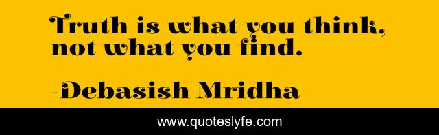 This page presents the quote "Truth is what you think, not what you find.". Author of this quote is Debasish Mridha. This quote is about life, debasish, mridha, philosophy, find, truth, think,.