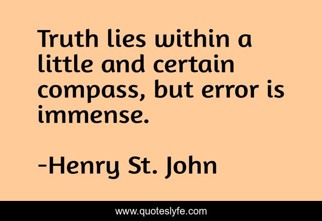 This page presents the quote "Truth lies within a little and certain compass, but error is immense.". Author of this quote is Henry St. John. This quote is about little, within, compass,.