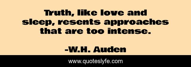 This page presents the quote "Truth, like love and sleep, resents approaches that are too intense.". Author of this quote is W.H. Auden. This quote is about society-denial, love, sleep, truth, affection,.