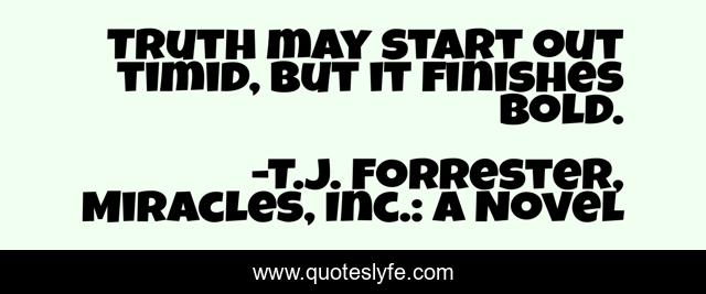 "T.J. Forrester, Miracles, Inc.: A Novel Quotes." Quoteslyfe.com, 2025. Sat. 06 Dec. 2025. <https://www.quoteslyfe.com/quote/Truth-may-start-out-timid-but-it-8513>.