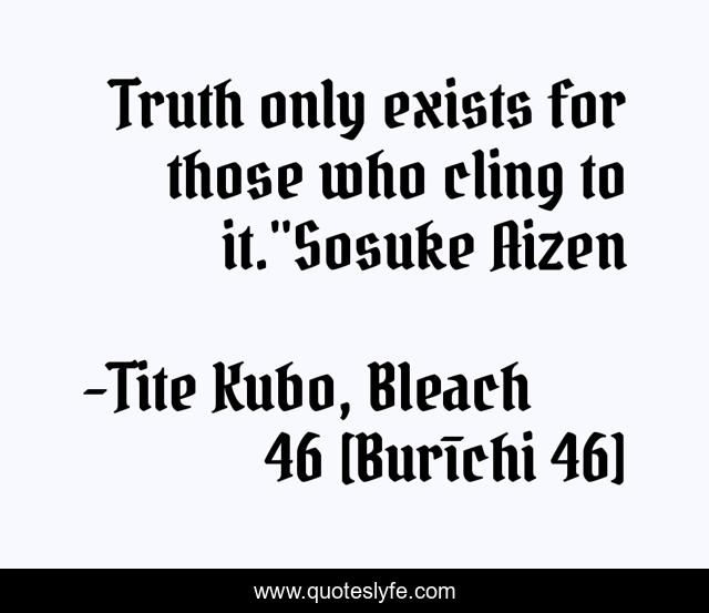 "Tite Kubo, Bleach―ブリーチ― 46 [Burīchi 46] Quotes." Quoteslyfe.com, 2025. Fri. 05 Dec. 2025. <https://www.quoteslyfe.com/quote/Truth-only-exists-for-those-who-cling-9694>.