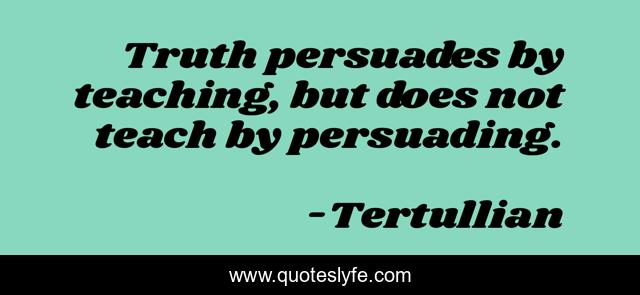 This page presents the quote "Truth persuades by teaching, but does not teach by persuading.". Author of this quote is Tertullian. This quote is about education, persuasion, truth,.