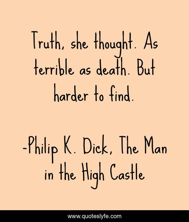 "Philip K. Dick, The Man in the High Castle Quotes." Quoteslyfe.com, 2025. Sat. 06 Dec. 2025. <https://www.quoteslyfe.com/quote/Truth-she-thought-As-terrible-as-death-9138>.