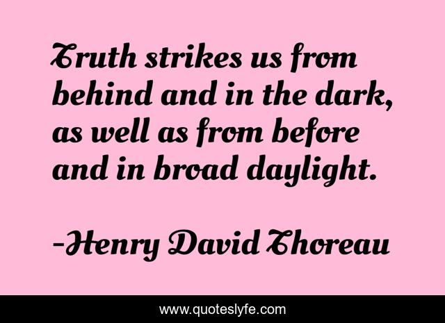 This page presents the quote "Truth strikes us from behind and in the dark, as well as from before and in broad daylight.". Author of this quote is Henry David Thoreau. .