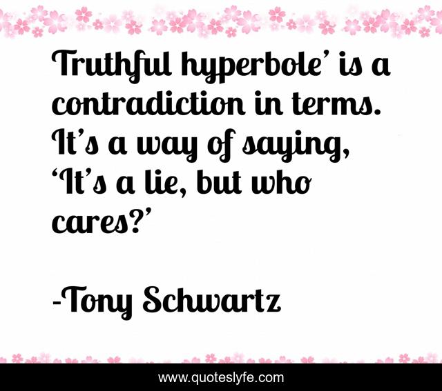 "Tony Schwartz Quotes." Quoteslyfe.com, 2025. Fri. 05 Dec. 2025. <https://www.quoteslyfe.com/quote/Truthful-hyperbole-is-a-contradiction-in-terms-167394>.