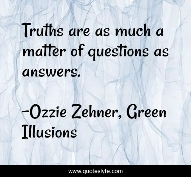 This page presents the quote "Truths are as much a matter of questions as answers.". Author of this quote is Ozzie Zehner, Green Illusions. This quote is about science, philosophical, inquiry, truth,.