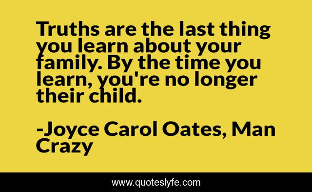This page presents the quote "Truths are the last thing you learn about your family. By the time you learn, you're no longer their child.". Author of this quote is Joyce Carol Oates, Man Crazy. This quote is about oates, truths, childhood, family,.