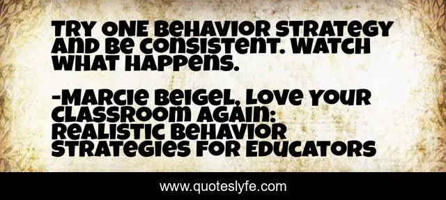 "Marcie Beigel, Love Your Classroom Again: Realistic Behavior Strategies for Educators Quotes." Quoteslyfe.com, 2025. Fri. 05 Dec. 2025. <https://www.quoteslyfe.com/quote/Try-ONE-behavior-strategy-and-be-consistent-33977>.