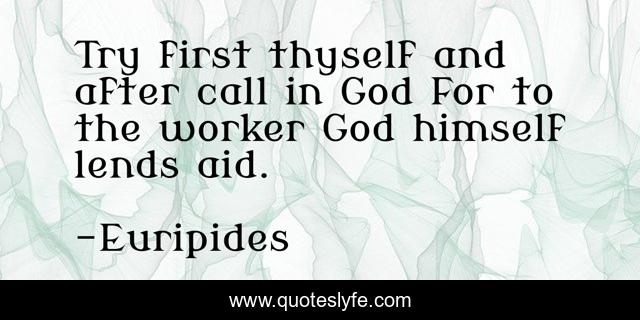 This page presents the quote "Try first thyself and after call in God For to the worker God himself lends aid.". Author of this quote is Euripides. .