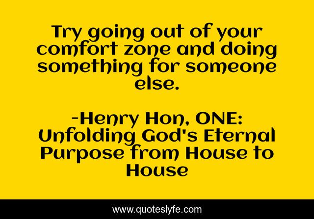 "Henry Hon, ONE: Unfolding God's Eternal Purpose from House to House Quotes." Quoteslyfe.com, 2025. Tue. 09 Dec. 2025. <https://www.quoteslyfe.com/quote/Try-going-out-of-your-comfort-zone-136261>.