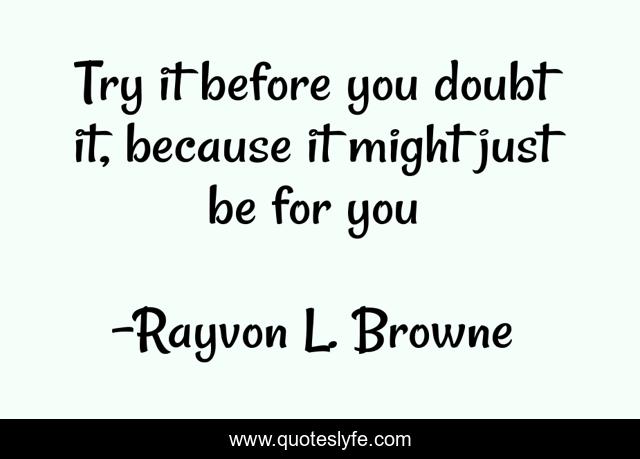 "Rayvon L. Browne Quotes." Quoteslyfe.com, 2025. Fri. 05 Dec. 2025. <https://www.quoteslyfe.com/quote/Try-it-before-you-doubt-it-because-14408>.
