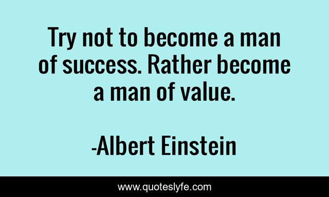 This page presents the quote "Try not to become a man of success. Rather become a man of value.". Author of this quote is Albert Einstein. This quote is about adulthood, success, value,.