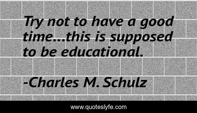 This page presents the quote "Try not to have a good time...this is supposed to be educational.". Author of this quote is Charles M. Schulz. This quote is about education, humor,.