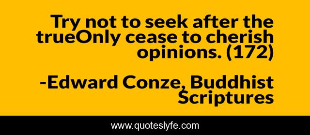 This page presents the quote "Try not to seek after the trueOnly cease to cherish opinions. (172)". Author of this quote is Edward Conze, Buddhist Scriptures. This quote is about non-attachment, attachment, truth,.