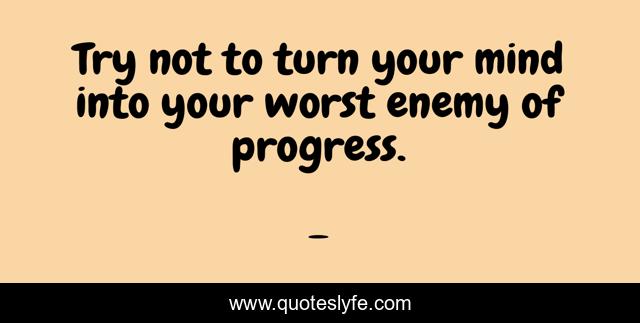 This page presents the quote "Try not to turn your mind into your worst enemy of progress.". Author of this quote is . This quote is about edmond-mbiaka, mind, enemy-of-progress, negativity, worst-enemy, think-positive,.