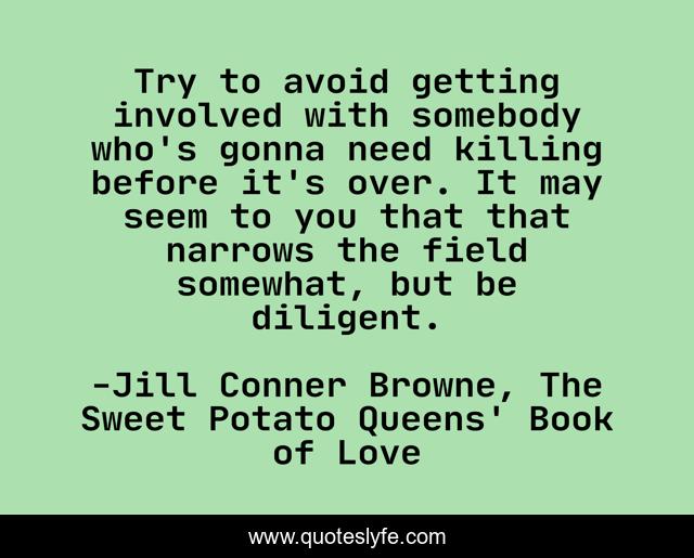 "Jill Conner Browne, The Sweet Potato Queens' Book of Love Quotes." Quoteslyfe.com, 2025. Fri. 05 Dec. 2025. <https://www.quoteslyfe.com/quote/Try-to-avoid-getting-involved-with-somebody-127363>.