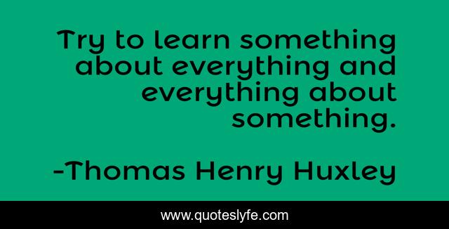 This page presents the quote "Try to learn something about everything and everything about something.". Author of this quote is Thomas Henry Huxley. This quote is about life, knowledge, intelligence, truth, wisdom, inspirational, science, enthusiasm, education,.