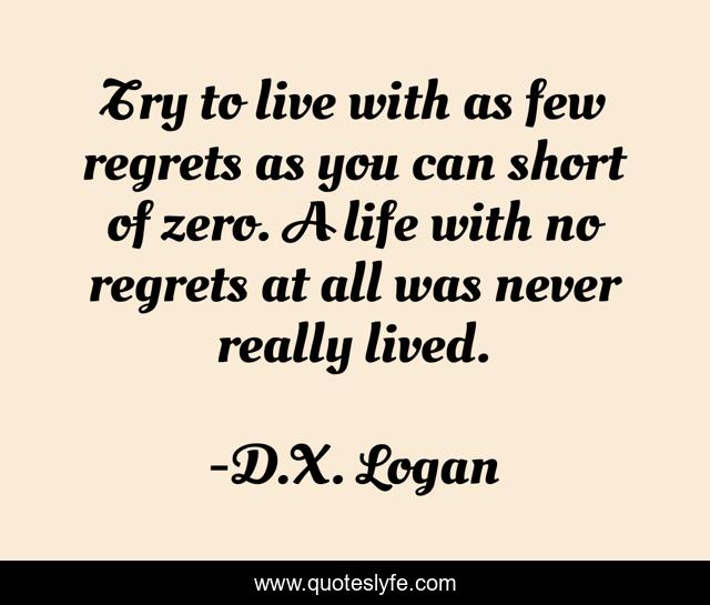 This page presents the quote "Try to live with as few regrets as you can short of zero. A life with no regrets at all was never really lived.". Author of this quote is D.X. Logan. .