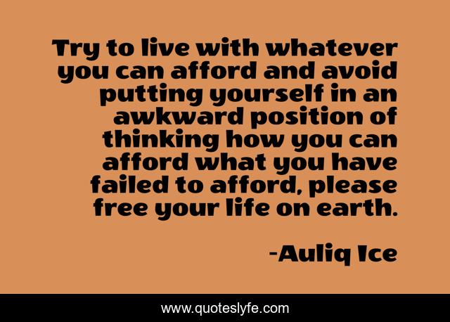 This page presents the quote "Try to live with whatever you can afford and avoid putting yourself in an awkward position of thinking how you can afford what you have failed to afford, please free your life on earth.". Author of this quote is Auliq Ice. This quote is about endurance, saving-money, enduring, enduring-hardships,.