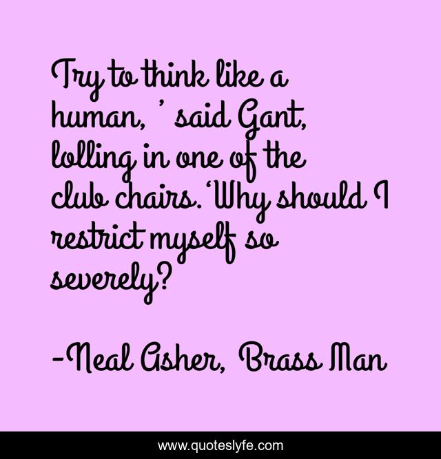 "Neal Asher, Brass Man Quotes." Quoteslyfe.com, 2025. Fri. 05 Dec. 2025. <https://www.quoteslyfe.com/quote/Try-to-think-like-a-human-said-41604>.