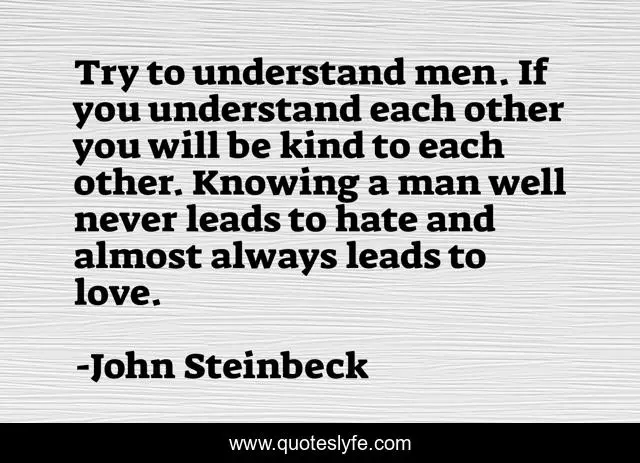 "John Steinbeck Quotes." Quoteslyfe.com, 2025. Sat. 06 Dec. 2025. <https://www.quoteslyfe.com/quote/Try-to-understand-men-If-you-understand-156575>.
