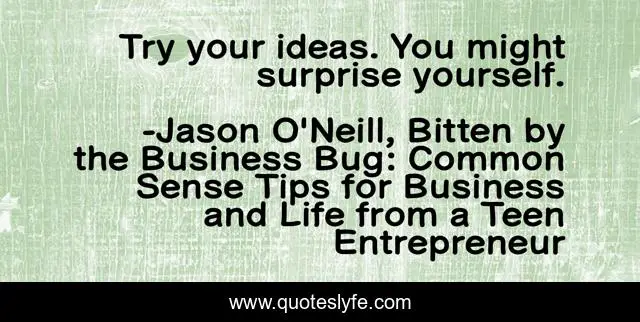"Jason O'Neill, Bitten by the Business Bug: Common Sense Tips for Business and Life from a Teen Entrepreneur Quotes." Quoteslyfe.com, 2025. Sat. 06 Dec. 2025. <https://www.quoteslyfe.com/quote/Try-your-ideas-You-might-surprise-yourself-108785>.