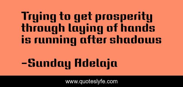 This page presents the quote "Trying to get prosperity through laying of hands is running after shadows". Author of this quote is Sunday Adelaja. This quote is about prosperity, prosperity-gospel,.