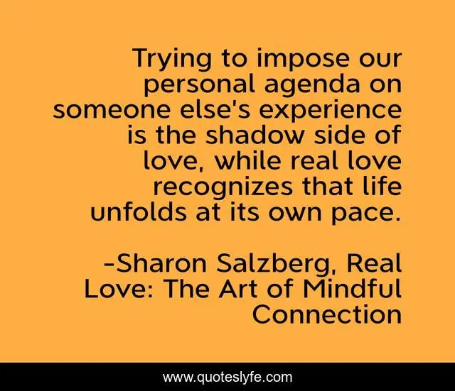 "Sharon Salzberg, Real Love: The Art of Mindful Connection Quotes." Quoteslyfe.com, 2025. Sun. 07 Dec. 2025. <https://www.quoteslyfe.com/quote/Trying-to-impose-our-personal-agenda-on-209643>.