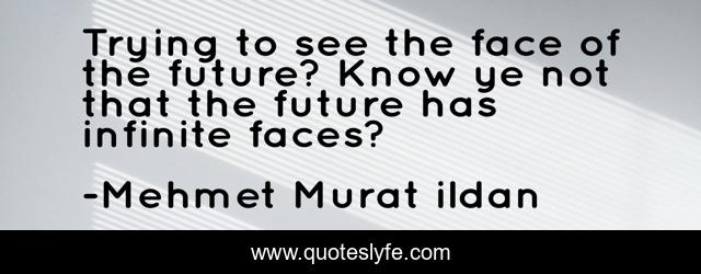 This page presents the quote "Trying to see the face of the future? Know ye not that the future has infinite faces?". Author of this quote is Mehmet Murat ildan. This quote is about infinite, face, future, murat-ildan,.