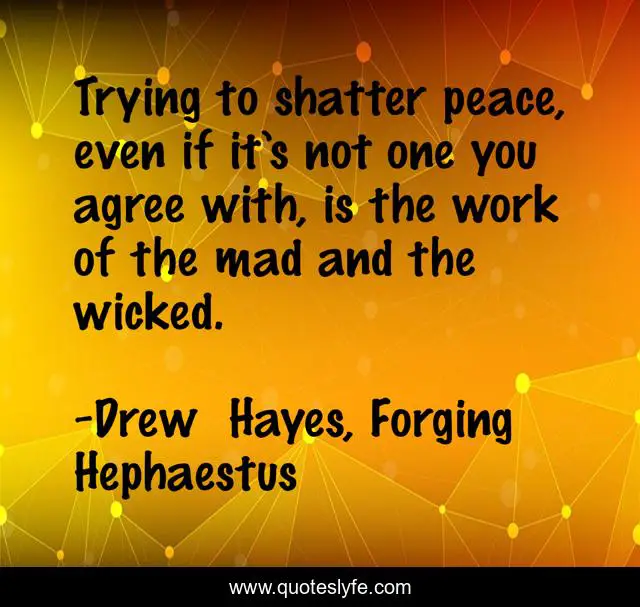 "Drew Hayes, Forging Hephaestus Quotes." Quoteslyfe.com, 2025. Fri. 05 Dec. 2025. <https://www.quoteslyfe.com/quote/Trying-to-shatter-peace-even-if-it-250540>.