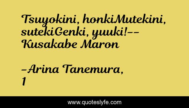 "Arina Tanemura, 神風怪盗ジャンヌ 1 Quotes." Quoteslyfe.com, 2025. Fri. 05 Dec. 2025. <https://www.quoteslyfe.com/quote/Tsuyokini-honkiMutekini-sutekiGenki-yuuki-Kusakabe-Maron-17946>.