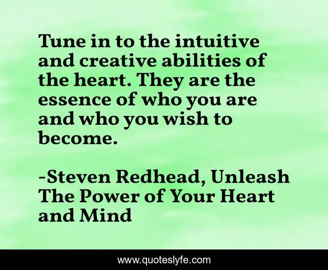 "Steven Redhead, Unleash The Power of Your Heart and Mind Quotes." Quoteslyfe.com, 2025. Fri. 05 Dec. 2025. <https://www.quoteslyfe.com/quote/Tune-in-to-the-intuitive-and-creative-81202>.