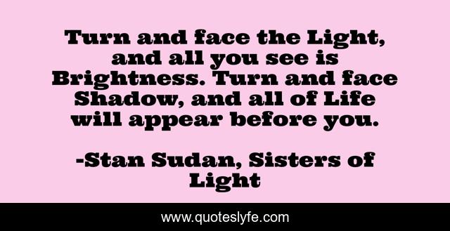 "Stan Sudan, Sisters of Light Quotes." Quoteslyfe.com, 2025. Fri. 05 Dec. 2025. <https://www.quoteslyfe.com/quote/Turn-and-face-the-Light-and-all-118753>.