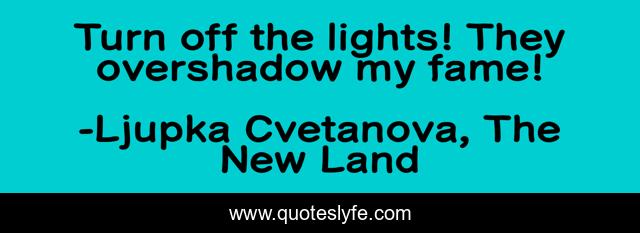 This page presents the quote "Turn off the lights! They overshadow my fame!". Author of this quote is Ljupka Cvetanova, The New Land. This quote is about aphorismrism, quote,.