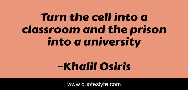 This page presents the quote "Turn the cell into a classroom and the prison into a university". Author of this quote is Khalil Osiris. This quote is about re-entry, human-rights,.