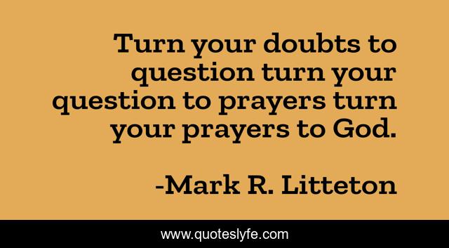 This page presents the quote "Turn your doubts to question turn your question to prayers turn your prayers to God.". Author of this quote is Mark R. Litteton. .